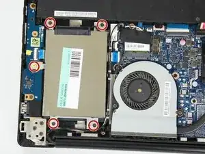 С помощью отвертки JIS #0 отвинтите пять винтов длиной 3.0 мм, фиксирующих корпус жесткого диска.