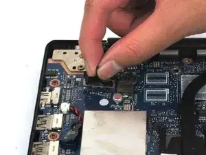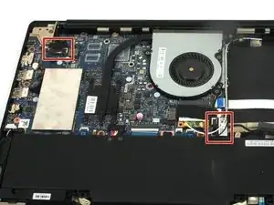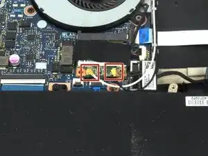 Снимите два адаптера, соединяющие дисплей с материнской платой, потянув за черные пластиковые застежки прямо вверх.