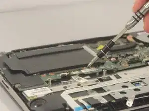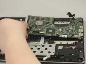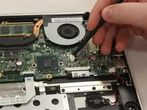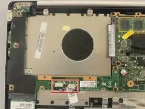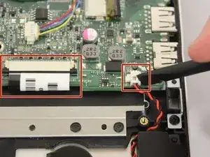 Отключите ленточный кабель аккумулятора от материнской платы.
