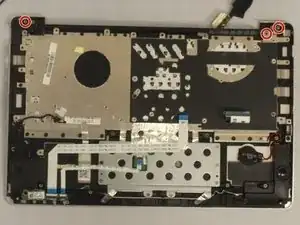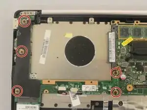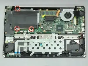 Открутите три винта 5 мм, крепящие дисплей к основному корпусу компьютера.