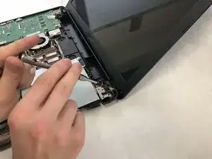 Поверните дисплей, чтобы получить доступ к разъёму материнской платы в нижней части экрана, и отключите его.