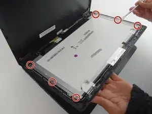 Удалите шесть серебристых винтов длиной 2,7 мм, крепящих кронштейн экрана к рамке экрана.