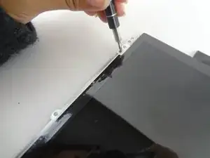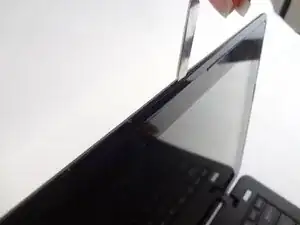 Вставьте металлическую лопатку между рамкой экрана и крышкой дисплея.