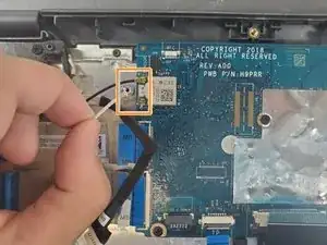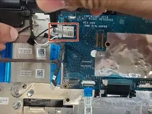 Отверткой Phillips #1 снимите один винт 3 мм, фиксирующий кронштейн WLAN на системной плате.
