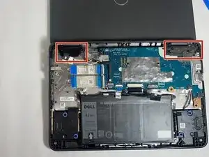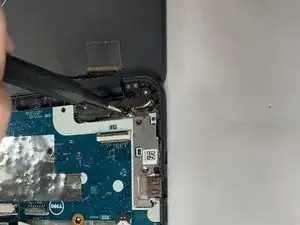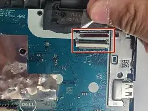 Отключите кабель дисплея от материнской платы с помощью пластикового инструмента для поддевания.