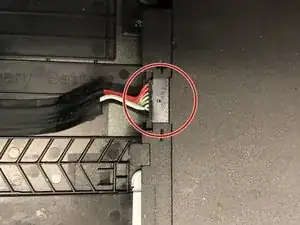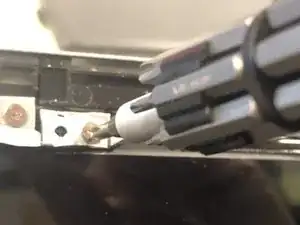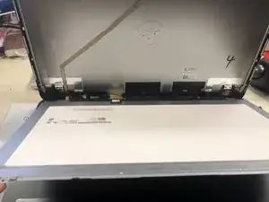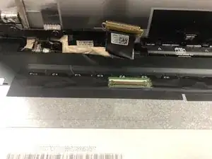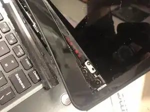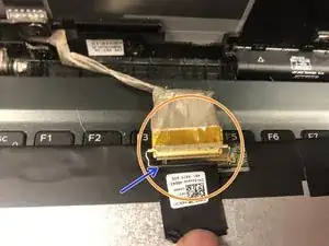 После того как экран снят с рамы и размещён на клавиатуре, отогните чёрный клей, чтобы открыть разъём ЖК-экрана.
