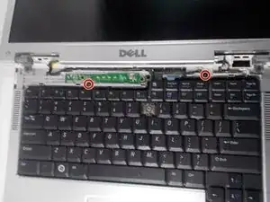Снимите два винта JIS #1 длиной 5 мм в верхней части клавиатуры.