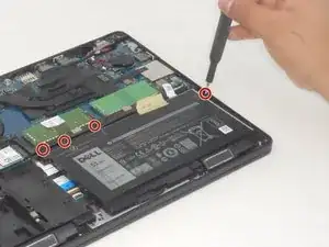 Удалите четыре винта с крестовой головкой длиной 5,6 мм, которые крепят батарею.