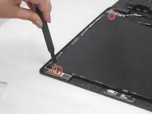 Удалите четыре винта с крестовой головкой длиной 5,6 мм, по одному в каждом углу, чтобы освободить сборку дисплея.