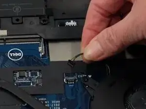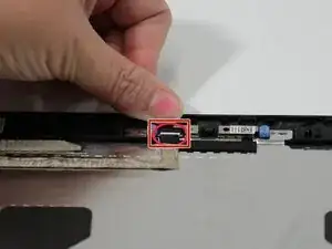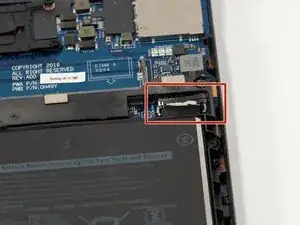 Потяните черный язычок на разъеме дисплейного кабеля, чтобы аккуратно отделить от материнской платы.