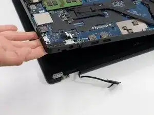 Отодвиньте провода Wi-Fi и дисплейный кабель от петли.