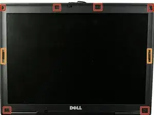Удалите 8 винтов (M2‑3 мм), указанных на фотографии. Поместите эти винты в промаркированный контейнер, так как они отличаются от винтов рамки.