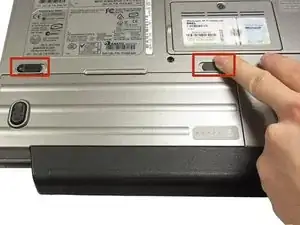 Используя два указательных пальца, сдвиньте защёлки батареи наружу.