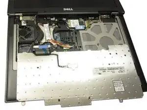 Не тяните и не отгибайте клавиатуру слишком сильно: клавиатура всё ещё подключена к материнской плате коротким ленточным кабелем.