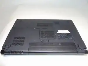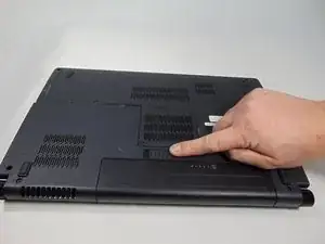 Переверните ноутбук так, чтобы нижняя часть была сверху, а батарея находилась ближе всего к Вам.