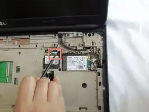 Отверткой крестовой отвинтите винт 4 мм, крепящий модуль WLAN. После снятия винта модуль приподнимется.
