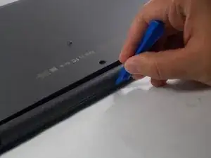 Проведите вдоль края с помощью инструмента для открытия iFixit, чтобы раскрепить рамку дисплея.