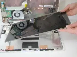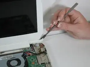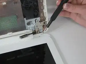 Используйте инструмент для открытия или чёрную нейлоновую лопатку, чтобы приподнять экран и отсоединить его от ноутбука.