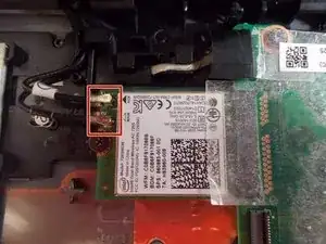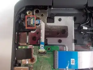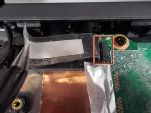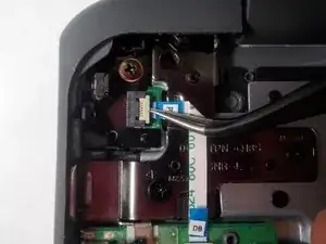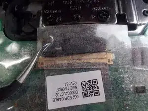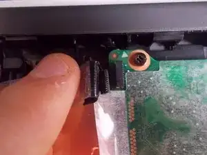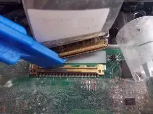 Осторожно извлеките бело-голубой плоский кабель из его разъёма.