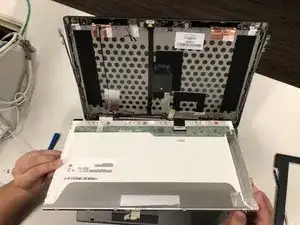 Осторожно отделите дисплей от верхней крышки.