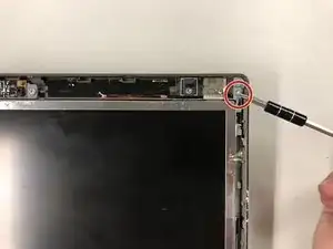 Используйте отвертку Phillips #00, чтобы открутить все четыре винта 0.8 mm с левой стороны рамки дисплея. Повторите на правой стороне.