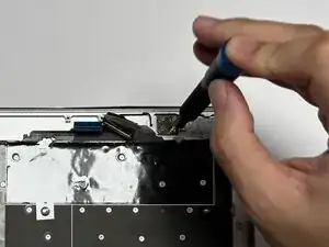 Схватите и поднимите эту наклейку вверх; это кабель тачпада.