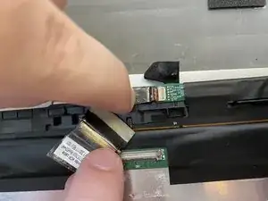 После снятия экрана найдите пару проводов, скрытых под двумя кусками ленты.