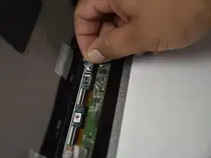 Удалите серую ленту, покрывающую провода, аккуратно потянув за вкладку (находится внизу дисплея).