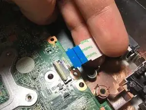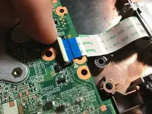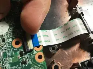Отцепите фиксатор, удерживающий кабель тачпада.