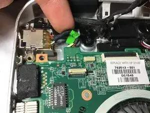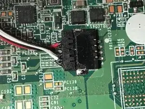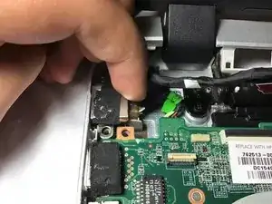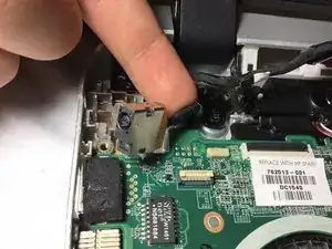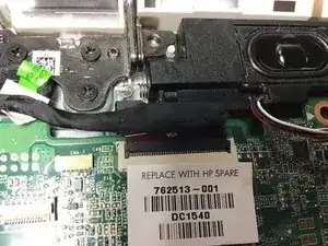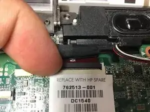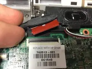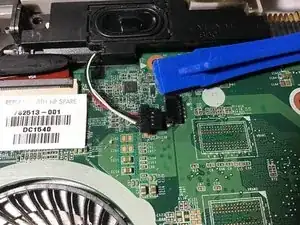 Отсоедините кабель динамика от материнской платы, используя пластиковый инструмент для вскрытия, подавив на подключённый кабель динамика.