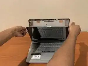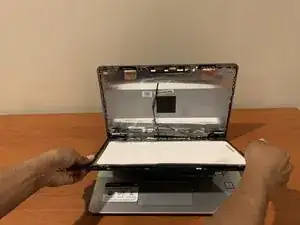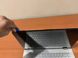 Вставьте лопатку между экраном и верхней крышкой, чтобы отделить его от ноутбука.