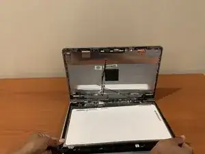 После того, как экран будет отжат от ноутбука, положите его лицевой стороной вниз на клавиатуру.