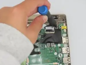 С помощью инструмента для вскрытия отсоедините разъём аккумулятора от материнской платы, затем извлеките аккумулятор.