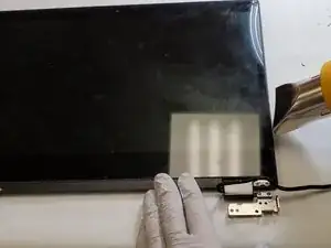 Используйте промышленный фен или iOpener, чтобы слегка нагреть внешние кромки дисплея и ослабить клейкие ленты.