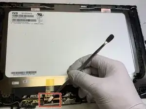 Отключите ленточный кабель дисплея.