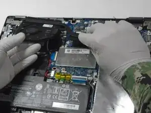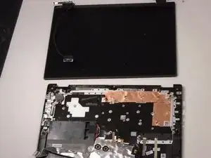 Отсоедините узел дисплея от остальной части устройства, разъединив петли дисплея и корпус ноутбука.