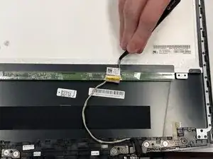 Осторожно оторвите наклейку и снимите соединение с дисплея.