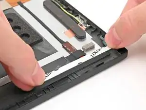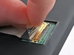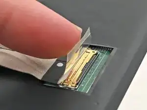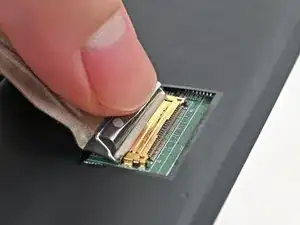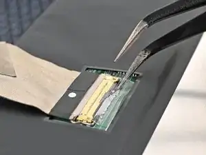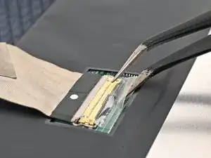 Вставьте изогнутые пинцеты под ленту, закрепляющую разъём eDP на задней стороне дисплея.