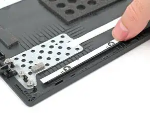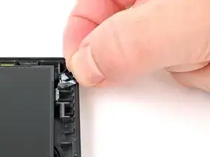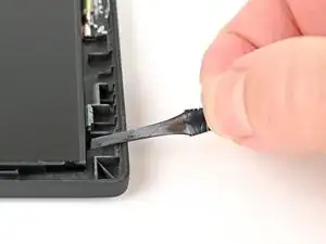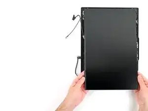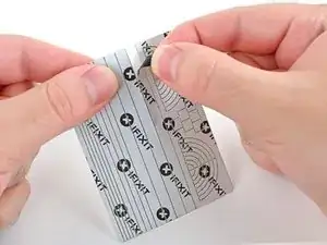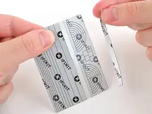 Если вам трудно отделить клей, используйте лопатку, чтобы разрезать клей, очень осторожно, чтобы не повредить плёнку. Если это всё ещё сложно, используйте iOpener или фен, чтобы слегка нагреть нижний край рамки.