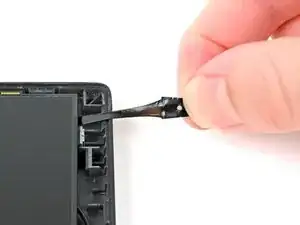 Поднимите край батареи вместе с разъёмом, чтобы отсоединить его.