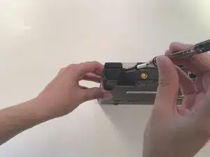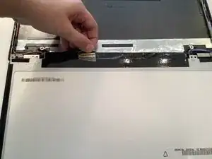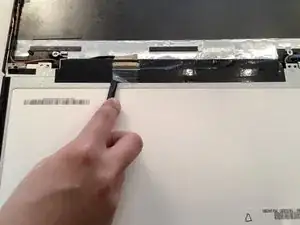 Вставьте плоский конец лопатки между корпусом дисплея и экраном. Отщелкните верхнюю часть корпуса от нижней части, удерживающей экран.