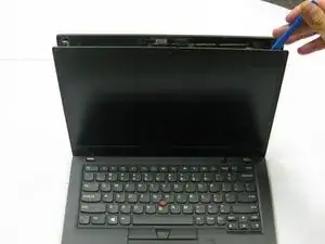 Вставьте инструмент для открытия между дисплеем и корпусом дисплея.