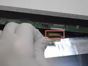 Откиньте фиксатор на ленте дисплея и вытяните её прямо из разъёма.