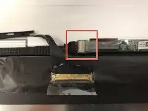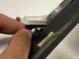 Аккуратно извлеките шлейф из соединителя, перемещая его в сторону шарнира ноутбука.