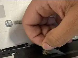 Осторожно снимите прозрачный защитный слой с последнего шлейфа, расположенного на большом черном полосе на задней части дисплея.