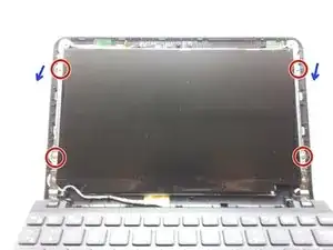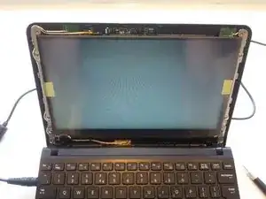 Подключите новый экран и защёлкните кабель на место. Аккуратно опустите экран на место, совместив четыре отверстия под винты. Закрутите четыре винта. Подключите сетевой адаптер и включите питание. Проверьте наличие битых пикселей или других аномалий.