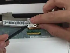 С помощью черного инструмента для открывания и кончика пальца аккуратно надавите на концы шлейфа, чтобы извлечь его из разъема.