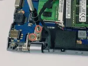 Используя отвертку Phillips #0, выкрутите винт длиной 6.5 мм в обозначенной окружностью области.