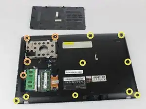 Отвинтите четыре серебристых винта длиной 4.4 мм рядом с жёстким диском.