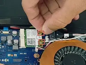 Отсоедините чёрный и белый кабели, потянув вверх, как показано на фото.